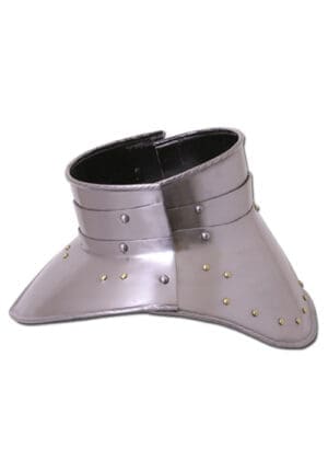 Questa corazza milanese in stile quattrocentesco è costituita da una pettorina e una piastra posteriore, oltre che di fiancali.