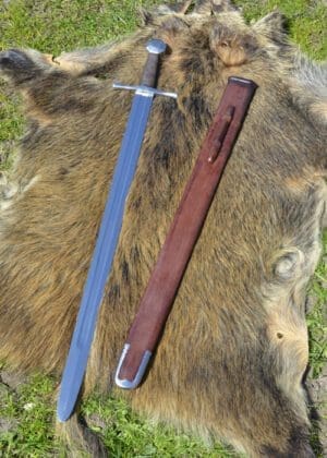La Viking Ironside Sword è dotata di una lama in acciaio lucido ad alto tenore di carbonio 1075. Ogni bordo è rifinito a mano e lucidato a rasoio. L’impugnatura in legno duro è rifinita con un rivestimento in pelle per un maggiore comfort e presa. La Viking Ironside Sword include un fodero in legno duro rivestito in pelle con raccordi in acciaio che lo rendono una vera rappresentazione di quest’arma classica.